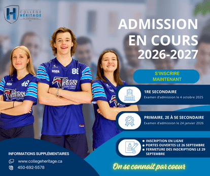 Le Collège Héritage de Châteauguay voit le jour en 1987 et s'installera dans le Manoir Richardson dont la construction remonte à 1923.