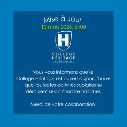 Le Collège Héritage de Châteauguay voit le jour en 1987 et s'installera dans le Manoir Richardson dont la construction remonte à 1923.
