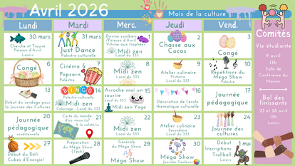 La vie étudiante du Collège Héritage de Châteauguay offre aux élèves l’occasion de participer à de nombreux événements. Qu'elles soient culturelles ou sportives, les activités offertes par les Loisirs du Collège ont de quoi plaire à nos élèves!